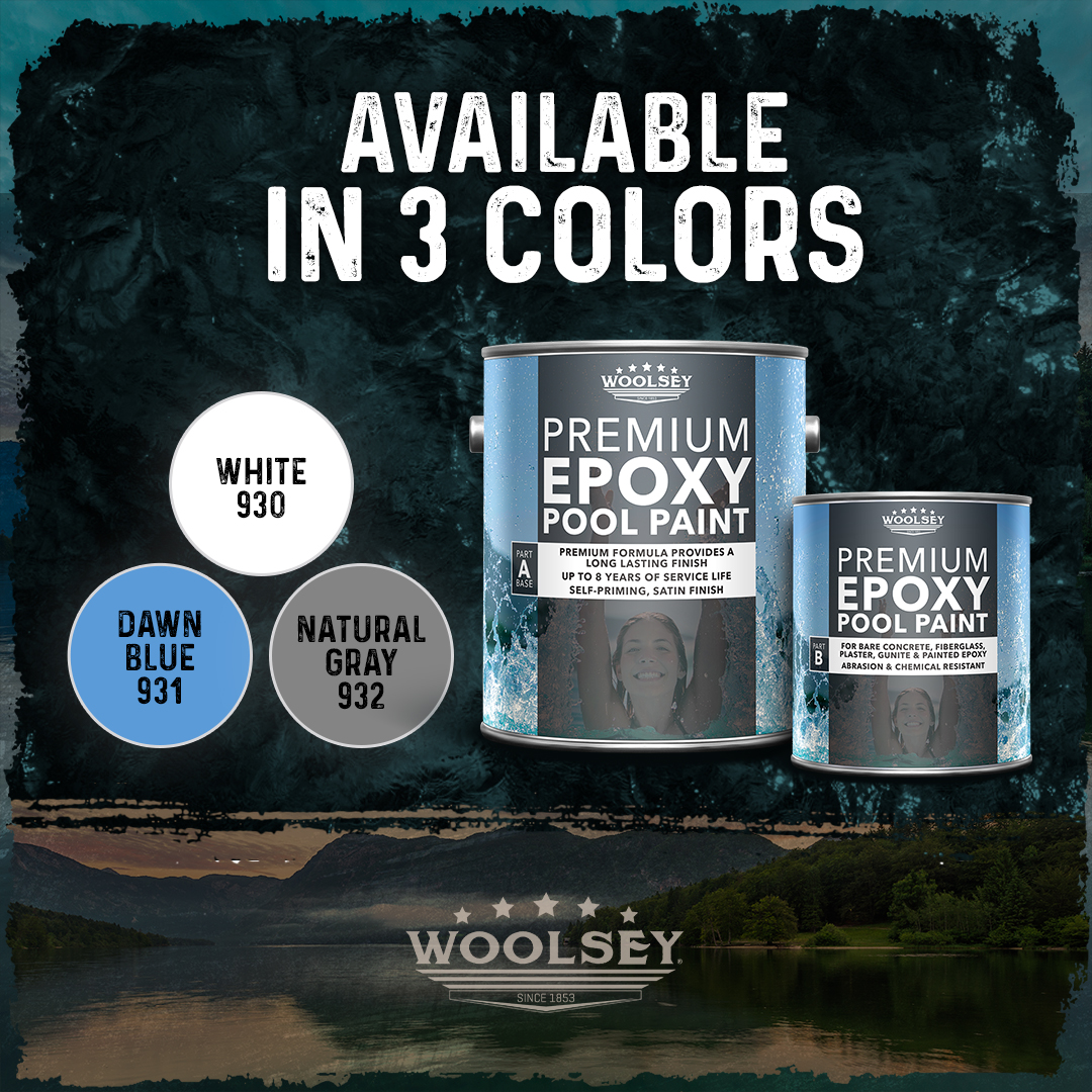 Woolsey® Premium Epoxy Pool Paint cures to a hard, tough, durable finish, providing stain, chemical and abrasion resistance for protection of concrete, plaster and fiberglass swimming pools, spas and slides.